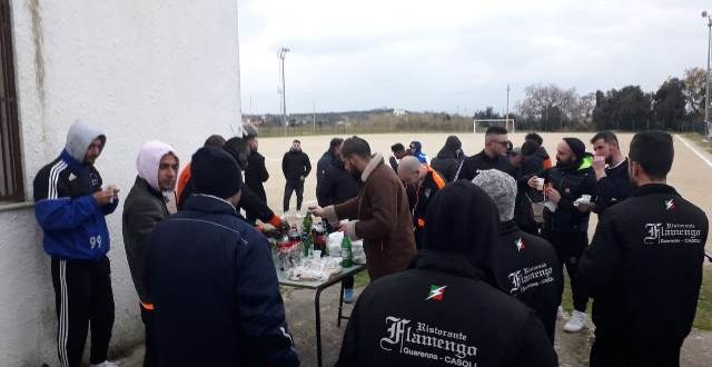 Giuliano Teatino. Il calcio che ci piace. Domenica scorsa al termine della gara tra l’Alevive Giuliano Teatino e il Montenerodomo del campionato di terza categoria, che si è disputato sul campo sportivo comunale “Adriano Flacco” di Giuliano Teatino, per la cronaca terminata con la vittoria (4 – 1) per i locali, le due squadre hanno dato vita ad un sano e bellissimo terzo tempo. Tutti insieme appassionatamente, i dirigenti, e i giocatori di entrambe le squadre riuniti a degustare panini, dolci e bevande, al conviviale si è unito anche l’arbitro della gara. Al temine la presidentessa dell’Alevive Giuliano Teatino, Giovanna Barbetti nel ringraziare tutti ha omaggiato con prodotti tipici locali la dirigenza del Montenerodomo.