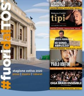 Ortona. ≠FUORIDALTOSTI è il nome del contenitore che racchiude le proposte offerte dal Teatro Tosti di Ortona, gestito dalla Compagnia dell’Alba, per questa estate 2020, ovvero prosa musica e cabaret. La rassegna rappresenta la ripresa dell’attività artistica del Teatro dopo lo stop forzato dovuto all’emergenza coronavirus. La stagione 2019/2020 è stata ricca di soddisfazioni per la Compagnia dell’Alba, diretta da Fabrizio Angelini e Gabriele de Guglielmo, che, grazie alle scelte artistiche messe in campo, ha riscontrato un notevole favore di pubblico. Sulla scorta di questo successo, la Compagnia ha voluto proporre , in collaborazione con il Comitato manifestazioni ortonesi, un ventaglio di eventi per l’estate. La rassegna si svolgerà all’aperto in ottemperanza a quanto prevedono le normative vigenti emanate dal governo. Si comincia martedì 28 luglio, alle ore 21.30, con LE SORELLE ROSSETTO – Italian swing vocal trio ovvero Gabriella Profeta, Marta Pietrosanti, Giorgia Bellomo. Un concerto spettacolo a rit o di swing, che celebra la femminilità e non rinuncia all’ironia dei testi spensierati di quelle canzoni che tutti quanti abbiamo cantato almeno una volta insieme alle nostre mamme. Si parte dalle romantiche melodie di Natalino Otto, fino ad arrivare a trasformarsi in un frenetico Scat, dove la voce imita la tromba, riportando alle sonorità attuali dell’elettroswing! Martedì 11 agosto, alle ore 21.30, Argot produzioni presenta TIPI di e con Roberto Ciufoli una carrellata di tipologie umane, un esilarante percorso che spazia dallo sportivo all’indeciso, dal timido al supereroe e al danzatore, mostrando come una particolare caratteristica psicologica condizioni un atteggiamento fisico, un modo di parlare e di scegliere le parole. Monologhi, poesie, sketch e balli rendono questo spettacolo un vero “multi – one – man -show”. Mercoledì 12 agosto, alle ore 21.30, UAO spettacoli porta in scena lo spettacolo teatral-musicale di Federico Perrotta e Piero di Blasio IO SONO ABRUZZO con lo stesso Perrotta e la musica dal vivo. In un’ora e mezza piena di risate e emozioni, Perrotta ripercorrerà l’arte che ha pervaso l’Abruzzo e che si è infusa direttamente, o per successione familiare, ai più famosi e apprezzati artisti del mondo. Sabato 22 agosto, alle 21.30, in piazza san Tommaso, le produzioni Nido del cuculo- Non c’è problema, Aladin- Francesco Di Tullio eventi presentano “PAOLO RUFFINI SHOW”. Un happening comico coinvolgente tutto da vivere per percepire l’atmosfera gioia e leggera di partecipazione. Si parte dal pubblico e dal suo umore e si sviluppa una varietà dalla comicità esilarante che lascia spazio anche a momenti di riflessione. Il tutto accompagnato da intermezzi musicali del maestro Claudia Campolongo al pianoforte. L’appuntamento conclusivo ci sarà giovedì 27 agosto, alle ore 21.30, con l’ OIGA BRASS ENSAMBLE diretta da Paolo Angelucci, un concerto che sarà un viaggio nel mondo dei grandi classici della musica. Biglietteria e prenotazioni al botteghino del Teatro Tosti. Info 085/4212125. Apertura martedì, mercoledì, venerdì sabato ore 18.00/20.00, giovedì 10.30/13.00. Acquisto on line sul circuito Ciao Ticket.