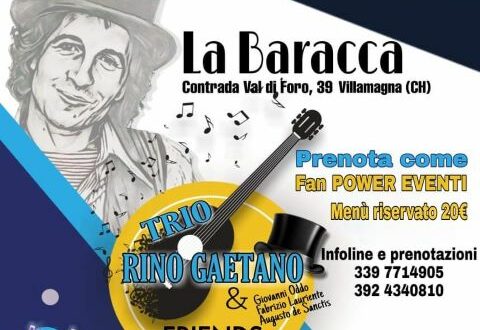 Villamagna. Appuntamento per venerdì 23 ottobre al ristorante “La baracca” di Villamagna per tutti i fans di Rino Gaetano ma anche di Lucio Dalla, Venditti, De Gregori e altri cantautori italiani.