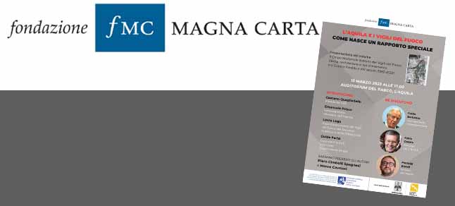 L’Aquila – Lunedì 13 marzo alle ore 17:00, presso l’Auditorium del Parco all’Aquila, si terrà l’evento “L’Aquila e i Vigili del Fuoco: come nasce un rapporto speciale” organizzato dalla Fondazione Magna Carta con il patrocinio del Comune dell’Aquila. L’iniziativa sarà l’occasione per presentare il volume “Il Corpo Nazionale Italiano dei Vigili del Fuoco. Storia, architetture e tipi d’intervento tra Guerra Fredda e XXI secolo (1982-2022)”, edito da Rubbettino. “Abbiamo scelto l’Aquila in virtù del legame che la città ha instaurato con il Corpo dei Vigili del Fuoco durante e dopo il tragico Terremoto del 2009 – spiega il presidente di Magna Carta, Gaetano Quagliariello -; un legame così forte e profondo da diventare parte integrante sia della storia dell’Aquila che di quella del Corpo”. Introdurranno la presentazione Gaetano Quagliariello, Emanuele Prisco, Sottosegretario all’Interno, Laura Lega, Capo Dipartimento dei Vigili del Fuoco, Guido Parisi, Capo del Corpo Nazionale dei Vigili del Fuoco. Ne discutono Guido Bertolaso, già Capo del Dipartimento della Protezione Civile e Commissario straordinario per l’emergenza Terremoto dell’Aquila, Pierluigi Biondi, Sindaco dell’Aquila e Fabio Dattilo, già Capo del Corpo Nazionale dei Vigili del Fuoco. Saranno presenti gli autori del volume, Piero Cimbolli Spagnesi e Marco Cavriani.