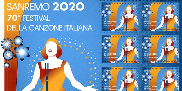 Poste Italiane comunica che oggi 7 febbraio 2020 viene emesso dal Ministero dello Sviluppo Economico un francobollo celebrativo del Festival della canzone italiana, nella 70ª edizione, relativo al valore della tariffa B pari a 1,10€.