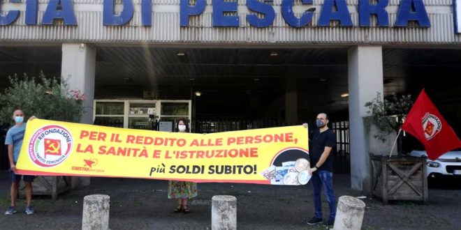 PROSEGUE LA CAMPAGNA: PIÙ SOLDI PER IL REDDITO ALLE PERSONE, SANITÀ E SCUOLA PUBBLICHE. OGGI PRESIDIO DI RIFONDAZIONE E GIOVANI COMUNISTE/I ALL’ INGRESSO DELL’UFFICIO SCOLASTICO PROVINCIALE DI PESCARA.