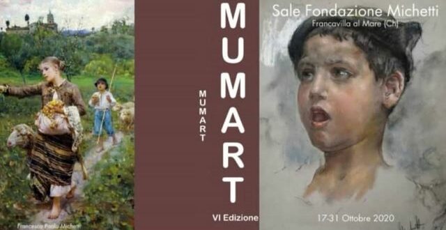 Francavilla al Mare. Dal 17 al 31 Ottobre 2020, presso le prestigiose Sale della Fondazione Michetti in Piazza San Domenico 1 a Francavilla al Mare (Ch) si terrà la VI Edizione di MumArt. In questa VI Edizione ci saranno grandi cambiamenti,in primis la location, MumArt sarà ospitata nelle prestigiose Sale della Fondazione Michetti. Un prezioso catalogo con note critiche della dottoressa Maria Cristina Ricciardi che conterrà foto e nota critica degli Artisti partecipanti e dulcis in fundo l’Alto Patrocinio della Regione Abruzzo, oltre a quello del comune di Francavilla al mare. Gli Artisti selezionati saranno 78,le opere 111, Artisti provenienti dalle, Italia, dal Canada, dalla Germania e dal Giappone.
