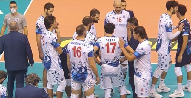 Per la sua prima volta in questa stagione 2020/2021 Coach Lanci deve fare a meno dell’ucraino Dimitriy Shavrak. In campo scendono dunque il regista Pedron con Cantagalli opposto. All’altra banda Marinelli e Sette rispondono «Presente». La coppia dei centrali è quella collaudatissima formata da Capitan Simoni e Menicali mentre il libero è Toscani.