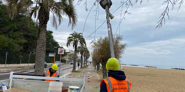 Montesilvano – Sul territorio comunale è in corso la sostituzione dei pali di pubblica illuminazione ammalorati e il ripristino, nei prossimi giorni, di nuovi impianti. La manuntezione prevede l’efficientamento energetico in via Aldo Moro, corso Umberto, via Vestina, Montesilvano Colle e il ripristino di pali e linee ammalorate o mancanti in via Gandhi, via Benedetto Croce, via Tevere 12, via Verrotti 27, via Vestina, via Cavallotti, via Aldo Moro, Strada Parco, viale Europa, via dei Ciliegi, via Giuseppe Verdi, via Saline, via Leopardi, via Chieti angolo via Venezia, via Torrente Piomba, Parco Europa 2, Parco Giovanni Paolo II, via Chieti, via Isonzo e piazza Beni. E’ prevista l’implementazione di 240 nuovi impianti di pubblica illuminazione e l’interramento di cavi elettrici sospesi presenti in diverse zone della città.