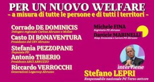 Pescara – Dopo gli incontri dedicati agli amministratori, alle forze economiche e sociali e al mondo della scuola, prosegue il ciclo del PD Abruzzo dedicato all’ascolto del territorio. Venerdì 22 gennaio (in diretta Facebook dalle 17.30 sulla pagina del Partito Democratico abruzzese) nel quarto incontro toccherà a welfare e terzo settore. All’incontro “Per un nuovo welfare, a misura di tutte …