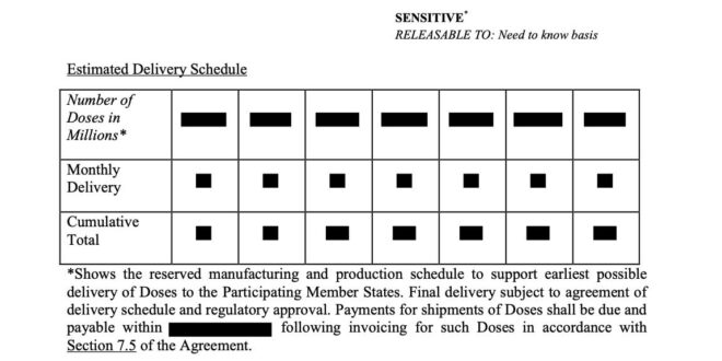 «Rifondazione Comunista chiede la pubblicazione integrale dei contratti sottoscritti dalla Commissione Europea con le multinazionali del farmaco sui vaccini.Marc Botenga e il nostro gruppo parlamentare europeo “La Sinistra” hanno ottenuto la pubblicazione da parte della Commissione Europea dell’accordo con AstraZeneca per la fornitura dei vaccini, ma ci associamo alla loro protesta per la quantità spropositata di omissis» A Chiederlo Maurizio Acerbo segretario nazionale di Rifondazione Comunista – Sinistra Europea-