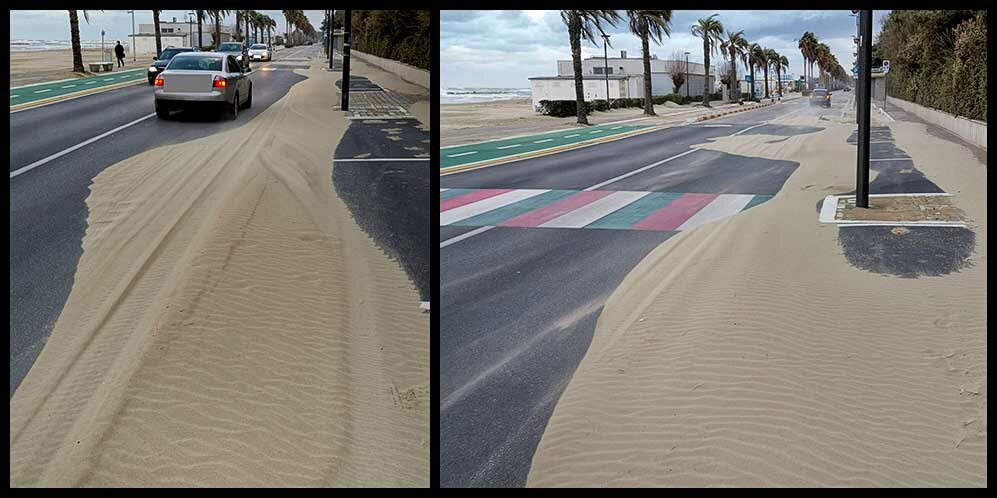 Montesilvano – “Come un anno fa a febbraio 2020, come luglio, e come altre volte negli ultimi mesi, il mancato ripristino di una siepe frangivento dopo il Jovabeach party su Via Aldo Moro in prossimità della spiaggia libera tra gli stabilimenti Sabbia D’Oro e Bagni Bruno continua a creare forti disagi e pericoli per tutti gli utenti della strada. Quel tratto di strada è una tavola di sabbia, situazione ulteriormente peggiorata in dopo “riqualificazione”, ovvero la rimozione dei cordoli della pista ciclabile e il rialzo del manto stradale per 300 metri con 54.700 euro di fondi prelevati dalle manutenzioni ordinarie”.