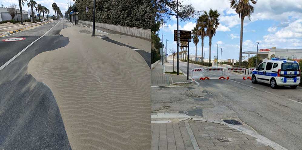 Così i consiglieri dei gruppi di opposizione del PD e del M5S che in una nota congiunta proseguono: «Nonostante gli impegni presi in Consiglio Comunale, rispetto alla proposta di provvedere al più presto con il ripristino di una barriera vegetale frangivento, l’ostinata scelta politica di non prendere immediati provvedimenti, continua a comportare uno sperpero ingiustificato di denaro pubblico, un costo ambientale e un costo sociale non indifferente: basti pensare ai disagi che ha comportato l’interdizione al traffico di oggi esclusivamente su questo tratto per i tanti automobilisti e utenti del trasposto pubblico, costretti a scendere dal mezzo per l’inaspettata deviazione. Per non parlare poi degli innumerevoli rischi per la sicurezza stradale di veicoli, ciclomotori, biciclette e pedoni. Un pericolo che ha trovato risposta nell’illuminante replica dell’Assessore Pompei, venuto a riferire in commissione, con la solita prosopopea “ma tanto chi passa su quella strada quando tira vento!”.»