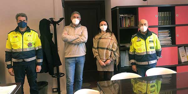 Il vice sindaco Albani con il dirigente Gramenzi ed i volontari di Protezione Civile