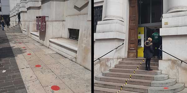 Negli spazi esterni di pertinenza aziendale antistanti 17 uffici postali, posizionata la segnaletica orizzontale a tutela della distanza interpersonale e in funzione anti-contagio