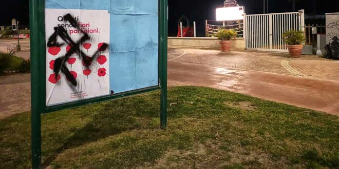 Pescara – “Restiamo sconcertati, ma per nulla sorpresi. A pochi giorni dai festeggiamenti riguardanti la Festa della Liberazione, assistiamo all’ennesimo gesto infame, al solito rigurgito fascista che ci ricorda quanto sia importante la nostra esistenza”.È il commento a caldo dei responsabili del Comitato Provinciale Pescara ANPI “Ettore Troilo” insieme alla sezione ANPI “Giuseppe e Renato Gialluca” cittadina dopo che ignoti nella notte in Viale della Riviera, hanno imbrattato “con la solita, scontata svastica nazista”, un manifesto che invita la cittadinanza pescarese a partecipare ai festeggiamenti del 25 Aprile.