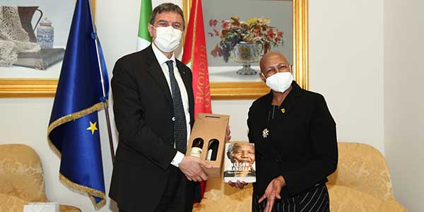 L’ambasciatrice ha fatto dono al presidente Marsilio di un libro che racconta delle vicissitudini di Mandela e dei grandi mutamenti democratici che hanno fatto seguito alla sua nomina a presidente della Repubblica.