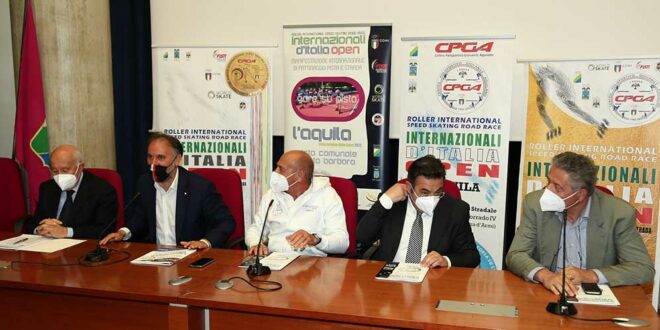 A illustrare il programma e i contenuti della Manifestazione Internazionale di Pattinaggio su Pista e su Strada organizzata da Coni, Federazione Italiana Sport Rotellistici, Centro Sportivo Educativo Nazionale, World Skate, Regione Abruzzo, Comune e Provincia dell’Aquila, c’erano anche l’assessore allo sport del Comune dell’Aquila, Vito Colonna, il Presidente regionale della Federazione italiana Sport Rotellistici, Giovanni D’Eugenio, il Presidente del Centro Polisportivo Cpga, Mario Miconi e il Segretario generale della Federazione internazionale World Skate, Roberto Marotta, quest’ultimo anche in veste di Campione del Mondo di Pattinaggio su pista 1969
