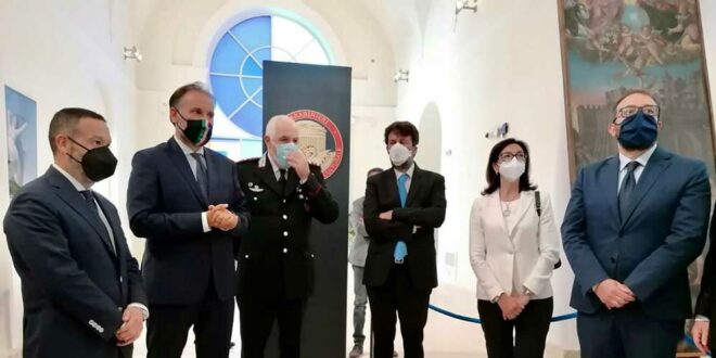 Proprio nell’ampia navata centrale dello storico edificio sono state esposte alcune opere d’arte recuperate dai Carabinieri del TPC, che sono state restituite alla comunità. Nello specifico si tratta di alcuni libri antichi di due istituti scolastici (l’Istituto Tecnico “Duca Amedeo d’Aosta” e il Convitto Nazionale “Domenico Cotugno”), trafugati a seguito del sisma 2009 e recuperati dal Nucleo TPC di Roma, una porzione di pala d’altare sottratta nel 1980 nella chiesa situata nel comune di Pizzoli – a pochi chilometri dall’Aquila – recuperata dal Nucleo TPC di Firenze e alcuni beni ecclesiastici recuperati dal Nucelo TPC di Ancona, sottratti a seguito degli eventi sismici del 2016 nel centro montano di Cagnano Amiterno, nel territorio aquilano.