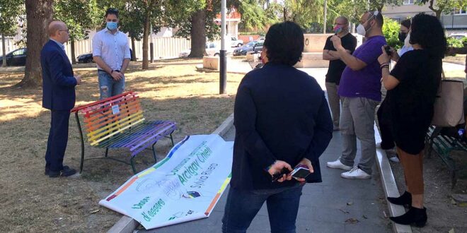Chieti – Questa mattina è stata inaugurata a Piazza Carafa a Chieti Scalo la Panchina Arcobaleno realizzata dall’associazione Arcigay Chieti Sylvia Rivera e patrocinata dal Comune di Chieti. La Panchina Arcobaleno è la prima panchina a essere stata realizzata nel progetto Le Panchine dei Diritti promosso dal Comune di Chieti.