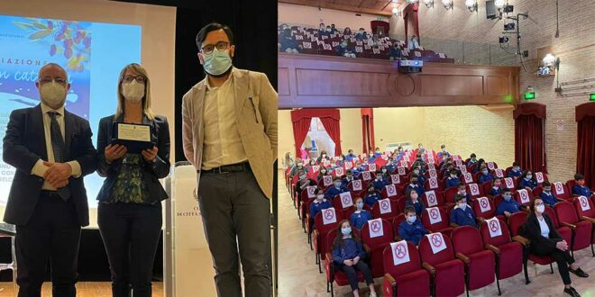 Città Sant’Angelo – Questa mattina, nel Teatro Comunale di Città Sant’Angelo, sono stati consegnati gli attestati con menzione d’onore, alle classi 4A-4B-4C della scuola Ritucci dell’Istituto Comprensivo di Città Sant’Angelo da parte dell’associazione “Città dell’Olio”.