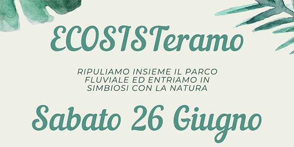 Teramo – ECOSISTeramo è il titolo della giornata ecologica che si svolgerà Sabato 26 giugno presso il Parco Fluviale, per sensibilizzare i Cittadini sull’abbandono dei rifiuti e sull’importanza di vivere e preservare gli spazi pubblici unendo il piacere di stare insieme al rispetto dell’ambiente e del proprio benessere.
