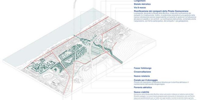 - riunificazione dei comparti 4 e 5 deviando la Strada della Bonifica verso sud-ovest per riallacciarla al sistema viario di San Silvestro spiaggia, con un tracciato alternativo, esterno alla riserva, ovvero una strada “zona 30” ;