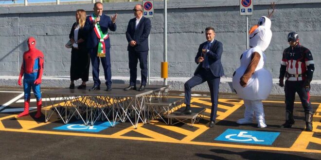 Montesilvano – Inaugurata la nuova area dell’ex Fea in via Boccaccio alla presenza degli alunni delle scuole primarie Marinelli in via Vitello d’Oro e Troiano Delfico, un parco per bambini con murales, un’area cani e nuovi parcheggi realizzati in meno di un anno. Al taglio del nastro, oltre al sindaco De Martinis, alla giunta e ad alcuni consiglieri comunali, è intervenuto anche il consigliere regionale Guerino Testa. Ad animare la mattinata musica per i più piccoli e tre personaggi dei fumetti che hanno giocato e posato nelle foto con i bambini.
