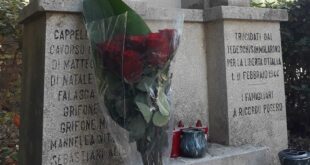 Pescara – Nella giornata di ieri una delegazione di Italia Nostra – Sez. “L. Gorgone” di Pescara e dell’ANPI Pescara si è recata nella scuola “11 febbraio 1944” per deporre un mazzo di nove rose rosse presso il cippo eretto in ricordo dei nove partigiani fucilati dai nazisti dopo la cattura e le torture subite dai fascisti repubblichini. «Le due …