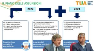 Presentato a L’Aquila il Piano delle assunzioni 2022-2023 L’Aquila – La TUA assume. Sono 127 le nuove professionalità che nel prossimo biennio andranno a rafforzare la forza lavoro dell’azienda unica della Regione Abruzzo che gestisce il trasporto su gomma e su ferro.Il piano delle assunzioni scaturisce a valle di un percorso di riorganizzazione aziendale e di concertazione sindacale articolato in due macro ingressi in azienda che andranno a …