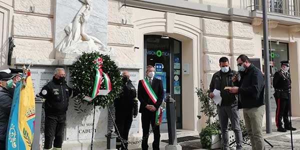 “ Come da tradizione abbiamo doverosamente reso onore ai caduti delle guerre, deponendo le corone di alloro dinanzi ai monumenti che li commemorano, afferma il sindaco Sandro Marinelli. Si tratta di una giornata che assume un ulteriore significato per due ragioni, aggiunge il primo cittadino: la prima legata alla pandemia che lo scorso anno ha imposto l’impossibilità di partecipare ad eventi come quello odierno e, la seconda, che vede l’importante ricorrenza del centenario della sepoltura del milite ignoto presso l’altare della patria. Come amministrazione comunale, conclude Marinelli, abbiamo voluto dare un segno tangibile di attualità per questa ricorrenza e di rinnovato e profondo rispetto per i caduti in guerra, collocando nuove lapidi con i nomi delle vittime militari e civili ed apprestandoci a colmare un vuoto istituzionale, dedicando proprio al Milite Ignoto una via di nuova istituzione nel nostro territorio”.