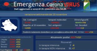 Leggi ancora »Coronavirus: in Abruzzo oggi 297 nuovi positivi e 3 decessi – dati aggiornati al 26 novembre