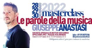 Soltore – Lo Spoltore Ensemble ospita Giuseppe Anastasi, per la Masterclass in programma dal 28 al 30 gennaio: Anastasi, docente alla scuola per autori di Mogol (ha scritto canzoni, tra gli altri, per Francesco Baccini, Mietta, Arisa, Anna Tatangelo, Noemi, Emma Marrone, Michele Bravi, Alexia), sarà alla Società Operaia di Mutuo Soccorso, in Piazza D’Albenzio, venerdì dalle ore 15 alle …