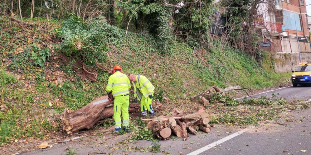 Non appena ricevuta e verificata la segnalazione, la Polizia municipale ha immediatamente allertato l’Anas, ente gestore della strada, che, nel frattempo era prontamente intervenuta. In poco tempo, il grosso albero è stato rimosso dalla carreggiata, anche con la collaborazione della squadra esterna del Comune, e si è provveduto a segnalare un altro albero ad alto fusto pericolante, che è stato successivamente tagliato per evitare nuovi incidenti. La giovane automobilista, chiaramente spaventata, è stata bravissima alla guida: non appena si è resa conto che l’albero stava cadendo, ha evitato il peggio senza perdere il controllo del veicolo.
