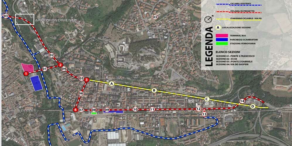 L’assessore alla Mobilità Sostenibile Maurizio Verna sottolinea: “Continuano le attività per la realizzazione di opere della mobilità sostenibile; dopo i 2,300 Km realizzati lo scorso anno per la linea che porta dal centro città fino al polo scolastico della Cona, ora si va verso est per completare un intervento che renderà l’intera area ad alto tasso di ciclabilità. Partendo da ponte san Gabriele realizziamo pertanto altri 5,300 km di pista per un totale di 7,6 di km di corsie ciclabili; questo in una città che ha già 8 km di parco fluviale ciclabile e una importante pista ciclopedonale alla Gammarana. Si arriva, quindi, quasi a 16 km di strutture ciclabili a Teramo. Se aggiungiamo l’importate finanziamento di 3.200.000 euro per i collegamenti con l’Università, sia verso Colleparco che verso Piano D’Accio,possiamo considerare la realizzazione del primo tratto della pista ciclabile sul Tordino, che successivamente verrà completata fino alla costa . Tutto ciò, nella direzione di una politica che vuole incentivare l’utilizzo di mezzi alternativi all’automobile per muoversi dentro la città, e quindi migliorare la qualità ambientale e favorire un utilizzo migliore degli spazi pubblici”.