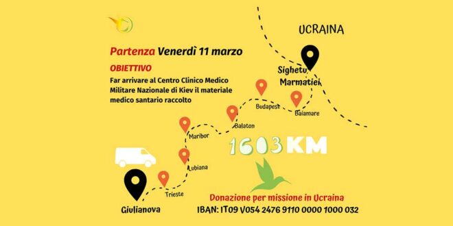 Questo pomeriggio, il Sindaco di Giulianova Jwan Costantini ha visitato il magazzino del Circolo Colibrì, a Colleranesco, dove si stavano effettuando le ultime operazioni di carico dei due mezzi che domani, con Ambra Di Pietro, Egidio Casati, Lino De Flaviis, Camillo Pomenti, Olger Pajo e Bruno Palandrani, partiranno alla volta di Sighetu Marmateu, sul confine rumeno-ucraino. I furgoni sono stipati di materiale medico sanitario che, consegnato successivamente al Centro clinico-medico militare nazionale di Kiev, sarà a disposizione della popolazione in guerra. L’iniziativa di solidarietà, che in poche ore ha visto la generosa raccolta del materiale richiesto, è stata promossa dal Circolo Colibrì di Giulianova, in collaborazione con Radio Tortoreto, “La voce dell’ Abruzzo” Aps Italia e Soccorso Amico. Tanti i volontari che hanno dato il loro sostegno e il loro tempo, permettendo di organizzare la spedizione in pochissimo tempo. ” Attivarsi dinanzi all’emergenza – spiega la presidente del Colibrì Ambra Di Pietro – è nel codice genetico del circolo. Abbiamo detto sì al Senegal e alla città nella fase critica della pandemia. Lo ripetiamo adesso alle comunità ucraina, aggiungendo al sì anche il “vengo”. Sì vengo, anzi, veniamo, perchè con noi ci sono spiritualmente anche i volontari, l’ Abruzzo, il cuore di tutti coloro che hanno voluto aderire e donare.” ” La città saluta il Colibrì e augura buon viaggio – dice il Sindaco – 1603 chilometri sono tanti, ma il tragitto sarà più breve e leggero se ad accorciare le distanze ci saranno il cuore e l’affetto di tutti i giuliesi. Oggi sono venuto a garantire questo: Giulianova è con la popolazione ucraina e con tutte le associazioni, gli enti, i comitati, i cittadini che, come recita il motto del Colibrì, hanno capito che è questo il momento per fare finalmente la loro parte”.