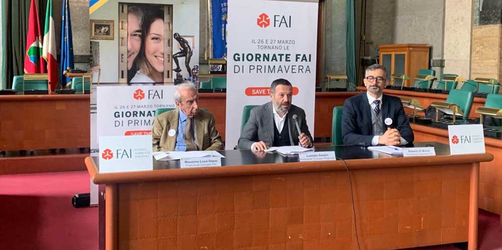 L’iniziativa è stata presentata questa mattina nella Sala Tinozzi della Provincia di Pescara dal nuovo presidente del FAI Abruzzo e Molise Roberto Di Monte – alla sua prima uscita ufficiale dopo la nomina avvenuta nelle scorse settimane – dal presidente onorario Massimo Lucà Dazio e dal presidente del Consiglio Regionale Lorenzo Sospiri,  alla presenza dei media regionali e di una nutrita rappresentanza dei 14 presìdi territoriali del FAI Abruzzo che conta 7 delegazioni FAI a L’Aquila, Marsica, Teramo, Pescara, Chieti, Lanciano, Vasto, 2 Gruppi FAI a Sulmona e Ortona e 5 Gruppi FAI Giovani a Teramo, Chieti, Pescara, Lanciano e nella Marsica.