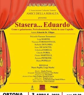 L’allestimento raccoglie i frammenti delle opere di Eduardo, ovvero “il meglio”, se si può parlare di meglio del grande Autore Napoletano. Mario Pupillo ha assemblato lo spettacolo nel 1994 e da allora sono state effettuate oltre 200 repliche in tutta la regione a fuori Abruzzo.L’impianto prevede un Pulcinella, affamato e mariuolo, che introduce il pubblico nei vari frammenti che vengono presentati. L’espediente permette allo spettatore di capire più facilmente dove e come avvengono le vicende disegnate da Eduardo. Napoli, città straordinaria nel bene e nel male, viene mostrata nella classicità e originalità del suo popolo e delle esperienze umane. Gli attori, in buona parte partenopei veraci, presentano i vari personaggi nel rapido susseguirsi di scene. Lo spettacolo è una sorta di zapping teatrale che commemora il grande Eduardo. La grandezza del suo teatro rimane invariata anche se le scene sono estrapolate dal contesto generale dell’opera. La grande umanità e sensibilità dell’artista viene riproposta con equilibrio e fedeltà al disegno drammaturgico delle opere. Si ride tanto, mai gratuitamente, e lo spettacolo filologicamente propone il percorso creativo di Eduardo con la guitteria di attori affamati e disastrati che provano una tragedia tutta da ridere in “Uomo e galantuomo”. Opera giovanile propone la commedia nella commedia con l’esilarante seduta di prove di un capocomico mezzo sordo, un suggeritore semianalfabeta e moglie e madre mezzo “ sceme”.Segue “Napoli Milionaria” con la scena del “finto morto”, durante la guerra, dove il brigadiere Ciappa tenta disperatamente di capire se Gennaro Jovine è veramente nel mondo dei giusti o si finge morto per nascondere il contrabbando. Il brigadiere non può toccare Gennaro in quanto chi non conosce il defunto non deve nemmeno sfioralo perché, secondo le regole della superstizione, commette sacrilegio e viene scomunicato. Si termina con la metafisica e didattica esperienza di un marito-moglie- amico in “Pericolosamente”, piccolo gioiello di impianto pirandelliano della maturità Eduardiana, dove un marito innamorato ma alle prese con una moglie isterica, si inventa un metodo per tenere a bada la donna e per far sopravvivere il matrimonio. Frammenti UOMO E GALANTUOMO NAPOLI MILIONARIA PERICOLOSAMENTE Partecipano Mario Pupillo, Gino Marfisi, Claudio Foria, Celeste Ciarelli, Assunta Petrone, Orazio Martelli, Vincenzo Torosantucci, Paola Simigliani, Palmiro Silvestro. Regia Mario Pupillo Scene Sergio Salicco Musiche di scena Massimo Benedetti. Assistente di Scena Sirio Marfisi. Fonica e luci Florindo Sangrelli e Claudio Presenza. Trucco Fiorina Battistella, Fulvia Trivilino. Organizzazione generale Ermanno Di Rocco