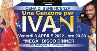 Pescara. Venerdì 8 aprile 2022 – ore 20,30 al MEGÀ DISCO Dinner di Pescara si svolgerà la serata di beneficenza dal titolo “Una Canzone per Ivan”, con il Patrocinio del Comune Pescara e della ASL Pescara.La cena solidale organizzata dall’associazione ADRICESTA, vedrà la partecipazione della showgirl e attrice Valeria Marini e di Pierpaolo Pretelli, dai programmi RAI, TALE & QUALE …