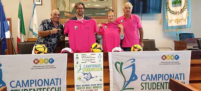 Roseto degli Abruzzi -E’ stata presentata questa mattina, mercoledì 7 settembre, alle ore 11:30, nella Sala consiliare del Comune di Roseto degli Abruzzi (TE), la finale nazionale dei Campionati Studenteschi di BEACH VOLLEY per le Istituzioni scolastiche secondarie di II grado, relativamente all’anno scolastico 2021-2022, in programma dal 19 al 23 settembre. La manifestazione è stata illustrata dal coordinatore regionale di Educazione Fisica, Antonello Passacantando, dopo i saluti istituzionali del sindaco della cittadina rivierasca del teramano, Mario Nugnes e dell’assessore comunale al Turismo e agli Eventi, Lorena Mastrilli.