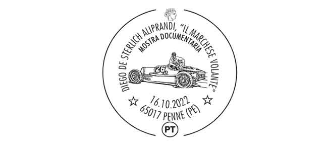 Penne – In occasione della mostra documentaria dedicata al pilota automobilistico Diego de Sterlich Aliprandi – su richiesta del Comune – domenica 16 ottobre Poste Italiane attiverà un servizio postale temporaneo con bollo speciale a Penne.