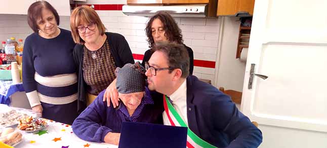 Teramo – Il Sindaco stamani ha reso omaggio ad una cittadina teramana che ha tagliato il traguardo dei 100 anni di età. Caterina Faragalli. originaria di Caprafico, era circondata dai familiari che hanno accolto il sindaco in un clima di grande emozione e partecipazione.