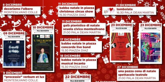 Un programma articolato presentato anche dall’assessore alle Manifestazioni e Turismo Comardi: “Quest’anno abbiamo allestito eventi di pregio e sono molto contenta di presentare questo calendario natalizio dedicato alle famiglie con diversi momenti per i bambini, perché il Natale è principalmente la festa di tutti loro, ma anche per gli adulti e i giovani. L’evento clou anche quest’anno sarà il Gran Gala di Natale con l’Orchestra Dean Martin, diretta da Antonella De Angelis ed Enrico Ruggeri, artista che ha segnato con i suoi brani la storia della musica italiana. Siamo molto felici di averlo per la prima volta nella nostra città. Porteremo avanti la tradizionale accensione dell’Albero di Natale che quest’anno abbiamo deciso di organizzarlo al Colle grazie al lavoro di alcune donne e dell’artista Gelsomina Rasetta. Il 9 dicembre il borgo sarà protagonista con un evento organizzato dall’Università Popolare della Terza Età il Processio verbum et lux con la regia di Bruno Spadaccini e l’aiuto regia di Loredana Saccomandi. Al Pala Dean Martin si svolgeranno invece molte altre manifestazioni per bambini organizzate dall’Associazione Amare Montesilvano. Gli eventi sono tutti gratuiti e con ingresso libero”.