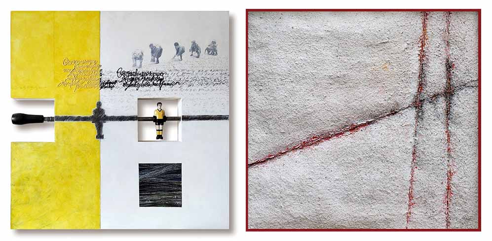 “Le loro opere raccontano il volto opaco del presente- prosegue Viozzi – attraverso composite esarazioni in cui aria e luce si fondono con la materia (Celli), elementi verbo-visivi disposti su ordinate verticali e orizzontali (Costanzo) e metaversi lontani da una logica decodificazione avvolti nel fascino del mistero (Mariani), con l’obiettivo di scuotere, sensibilizzare e far riflettere l’osservatore”.
