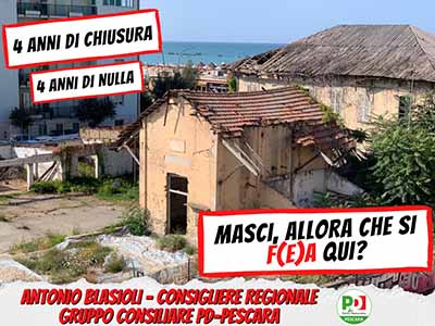 In uno sprint di dignità chiediamo alla Regione almeno di individuare un percorso che possa far ripartire l’intervento di riqualificazione. Mentre al Sindaco Masci di cui ricordiamo il trionfale annuncio: “È un altro passaggio importante per una città che si candida a essere un polo culturale e non solo realtà vocata al turismo e ai servizi. La posizione privilegiata dell’ex Fea, sul lungomare nord di Pescara, fa sì che l’area sia destinata ad essere meta preziosa e privilegiata per gli amanti dell’arte e del bello a due passi da mare, che è l’elemento naturale in cui la nostra comunità si riconosce”. Il Sindaco di Pescara, Carlo Masci, preannuncia con queste parole la nascita di un complesso museale lì dove un tempo vi era la stazione ferroviaria; una struttura da troppo tempo abbandonata a sé stessa tanto da essere luogo di ritrovo di senza-tetto e sbandati” chiediamo di farsi valere e di battersi per Pescara, e di cercare, se la bonifica non dovesse partire questa estate, almeno di ripristinare il parcheggio per i tre mesi estivi e compatibilmente con la bonifica da fare.» Conclude il consigliere regionale Blasioli insieme ai Gruppi consiliari Pd, Sclocco Sindaco e Città Aperta al Comune di Pescara.