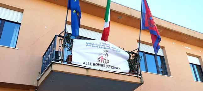 Spoltore – Il 1° febbraio, in occasione della Giornata nazionale delle vittime civili delle guerre e dei conflitti nel mondo, il Comune di Spoltore, su invito dell’Associazione Nazionale Comuni Italiani e dell’Associazione Nazionale Vittime Civili di Guerra (ANVCG), ha deciso di aderire alle celebrazioni della Giornata esponendo lo striscione “Stop alle bombe sui civili”.