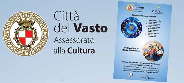 Doppio appuntamento in casa ACM di Vasto: il concorso a premi “L’allegoria dei segni zodiacali” e la mostra della “Bottega d’Arte di Sofya Abalmasova”. Le opere verranno esposte nella Sala Bontempo di Palazzo d’Avalos, dal 15 al 23 aprile 2023.