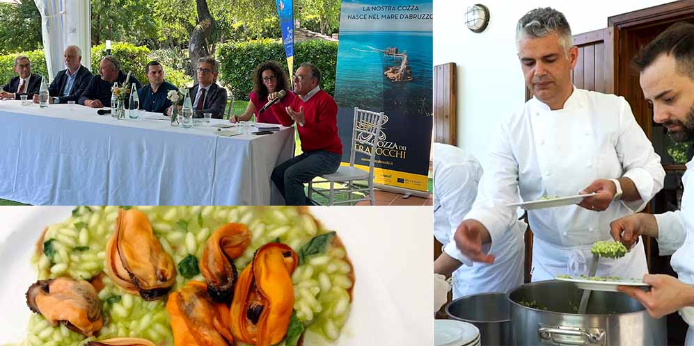 Al termine del convegno, spazio alla conoscenza del prodotto dal punto di vista culinario con un testimonial d’eccezione: lo chef stellato Nicola Fossaceca. «Ho sempre avuto una passione per le cozze», ha rivelato. «Da piccolo guardavo mia madre che le puliva e poi le rubavo e le mangiavo. È con grande piacere che contribuisco a questo percorso di valorizzazione di un prodotto non solo locale, ma anche eccellente». Sono state tre le ricette proposte dallo chef, anche in abbinamento con altri prodotti del territorio abruzzese: cozze con fagiolini e peperone dolce di Altino, cozze con spuma di ceci di Navelli e risotto in versione estiva con cozze, crema di bietola, limone candito, aglio rosso di Sulmona e prezzemolo.