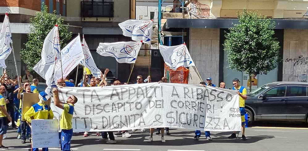 Pescara – E’ stata intensa la manifestazione di questa mattina, 1° giugno, dei corrieri Cisal filiale Poste Italiane di Pescara. Corteo e sciopero contro la delocalizzazione. “Questa realtà lavorativa del nostro paese ha bisogno di essere regolamentata e, lì dove si verifichi, difesa dagli attacchi destabilizzanti esterni ed interni.”
