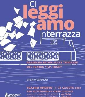 Nel mese di agosto, dal venerdì alla domenica, inoltre, sarà possibile visitare il Teatro Tosti usufruendo della spiegazione di una guida che illustrerà la storia del teatro. Cambiano, infine, gli orari del botteghino che sarà aperto: martedì, mercoledì, giovedì dalle ore 18.00 alle 20.00, venerdì, sabato, domenica dalle 21.00 alle 23.00.