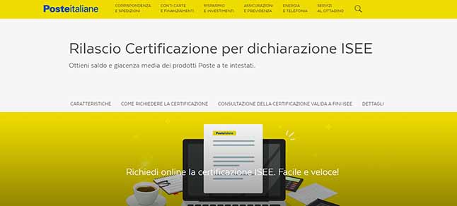 Il documento è disponibile in tempo reale e, per ottenerlo, è sufficiente accedere tramite le proprie credenziali al sito poste.it nella sezione dedicata. La certificazione, che viene emessa su richiesta dell’intestatario, racchiude tutte le informazioni necessarie per il calcolo dell’ISEE e relative ai prodotti finanziari intestati o cointestati al codice fiscale del cliente. In particolare, riporta saldo e giacenza media dei conti e dei libretti di risparmio attivi/estinti nel corso dell’anno 2021, il valore nominale dei Buoni Fruttiferi Postali (cartacei e dematerializzati), saldo al 31.12.2021 delle Postepay nominative, saldo e giacenza media al 31.12.2021 delle Postepay con IBAN e delle Carte Enti Previdenziali, la situazione al 31.12.2021 dei Fondi di Investimento, e del Deposito Titoli nonché l’attestazione dei premi versati per Polizze Assicurative ed è disponibile al seguente link https://www.poste.it/prodotti/rilascio-certificazione-ai-fini-isee.html.