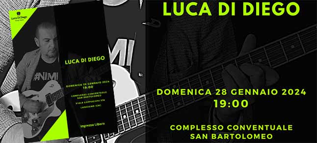 Lanciano – Domenica 28 gennaio alle ore 19 a Lanciano presso il complesso conventuale San Bartolomeo in viale cappuccini 178, Luca Di Diego ci racconterà attraverso diversi generi musicali la chitarra moderna. Ospite della serata sarà il bravissimo Liutaio Vincenzo Cicconetti che esporrà alcune delle sue meravigliose chitarre.