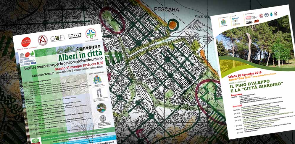 Anche in questo caso ci siamo attivati per fornire la nostra sollecitazione e il nostro contributo: nel giugno del 2020 ci siamo fatti premura di rimettervi un “Contributo alla stesura di un Piano del Verde” che già allora chiedevamo a gran voce. Il contributo, sintetico esito del lavoro di alcuni nostri soci esperti, constava nello schema ideogrammatico di una possibile rete naturalistica della città e in una breve relazione. Nemmeno la parvenza di una risposta ci pervenne da parte vostra, né di apprezzamento né di rigetto: un atteggiamento scortese che inaugurava (cosa più grave) uno stile di chiusura alle istanze culturali cittadine nei campi dell’ambiente e della storia urbana. Tantomeno ci vennero notizie sulla vostra attività al riguardo che, infatti, si è palesata solo di recente, ormai nell’ultimo scorcio della vostra Consiliatura, praticamente sortendo solo un effetto di annuncio. Il nostro specifico contributo ha seguito ben due convegni con esperti nazionali (anche con alcuni studiosi di vostra conoscenza e fiducia). Uno si tenne all’Auditorium Petruzzi l’11 maggio 2019, nell’ultimo scorcio della precedente Amministrazione: “Alberi in città: analisi e prospettive per la gestione del verde urbano”. L’altro si tenne all’Aurum il 30 novembre 2019, agli esordi della Amministrazione attuale: “Il pino d’Aleppo e la “città giardino”. Entrambi hanno avuto il patrocinio del Comune e l’intervento dei due Sindaci, il precedente e l’attuale. Tutto ciò (accompagnato, naturalmente, da numerosi interventi minori, eventi con specialisti, presentazione di pubblicazioni, ecc.) testimonia non solo il nostro importante impegno su questi temi ma anche l’atteggiamento collaborativo da noi sempre avuto. Alla luce di questo indispensabile riepilogo, procediamo ad inviarvi di nuovo il nostro contributo per il “Piano del verde” a Pescara (con l’auspicio che esso venga esteso almeno all’area dei Comuni in corso di fusione). Speriamo che da esso possa cogliere qualche spunto utile e che, infine, vi determiniate a consultaci per questi importanti passaggi nella gestione del territorio, attuando le forme partecipate previste dai Regolamenti comunali in vigore.
