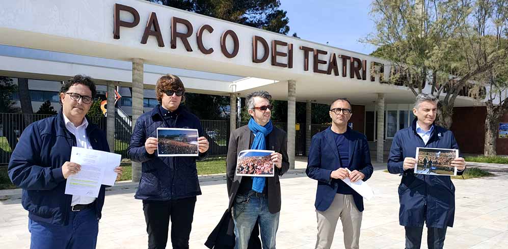 Pescara – Questo mattina, davanti al Teatro D’Annunzio, il consigliere regionale del PD, Antonio Blasioli, insieme ai consiglieri comunali del Centrosinistra pescarese, Giovanni Di Iacovo, Piero Giampietro, Francesco Pagnanelli, e Mirco Frattarelli, ha tenuto una conferenza stampa per sollevare nuove questioni riguardo all’utilizzo della struttura dal 2020 ad oggi, e per richiedere al sindaco Masci i dovuti chiarimenti.